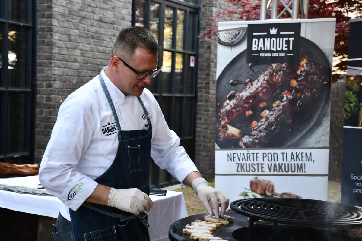 Poobedný čas mohli návštevníci tráviť vo vonkajších priestoroch, kde Peter Bilčík, špecialista značky BANQUET, pripravoval na grile špeciality prichystané metódou SOUS-VIDE ako napríklad bôčik, krkovičku či kuraciu roládu. Táto metóda je mimoriadne vhodná na prípravu mäsa, nakoľko si zachová svoju šťavnatosť a všetky dôležité živiny.