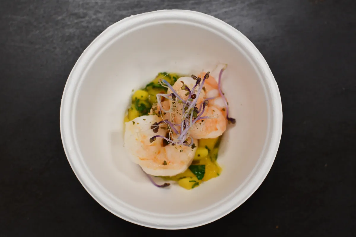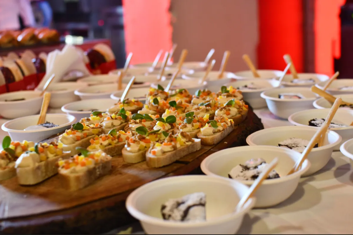 Počas cofee breakov mali naši šéfkuchári Ján Duda (na fotke vpravo) a Marek Madzik (na fotke vľavo) pripravené na degustáciu rôzne pokrmy, napríklad miniburger s trhaným bravčovým, maslový croissant s pomarančovým korením či mango chutney so sezamom, krevetou a salsou verde.
