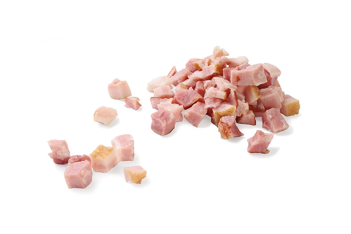 Jednou z prvých noviniek v sortimente BRAVUR je oravská slanina krájaná na kocky o veľkosti približne 1 x 1 cm. Vďaka jej lahodnej chuti a prvotriednej kvalite je vhodná na halušky, do zapekaných cestovín alebo základov omáčok. Dokonca ňou môžete nahradiť pancettu v talianskych receptoch.