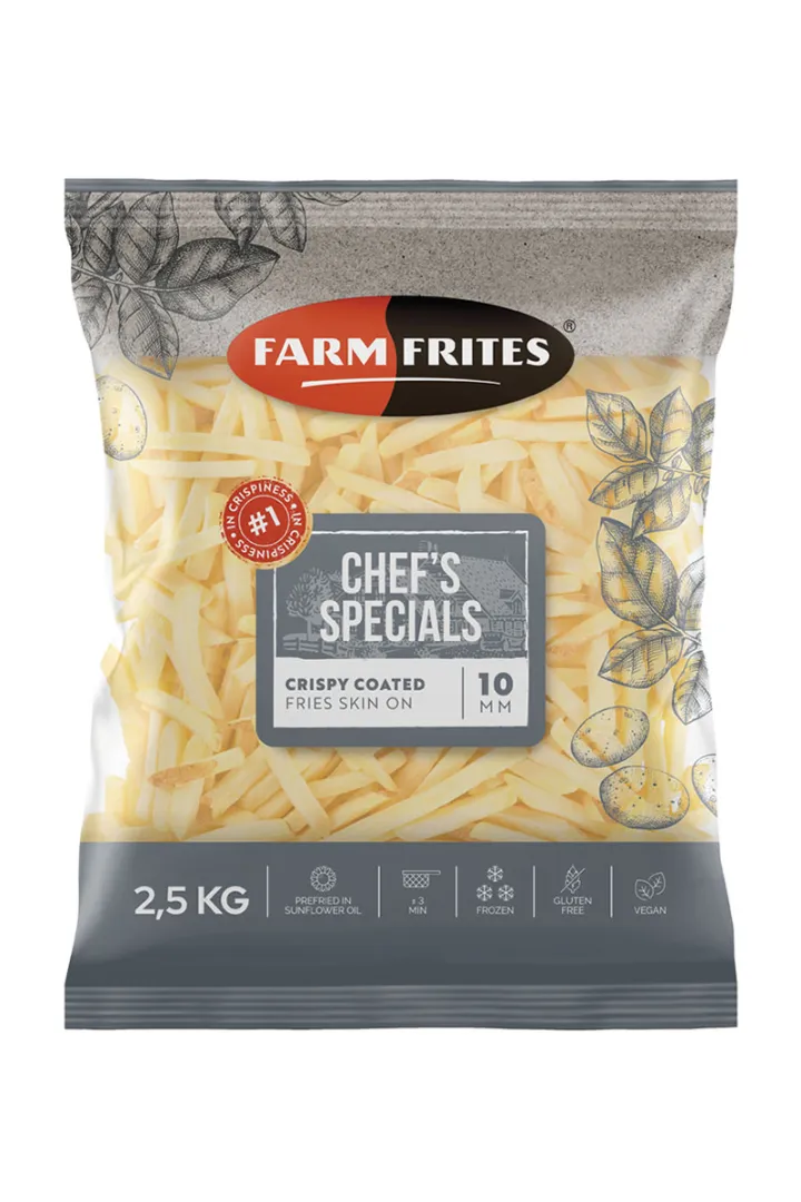 Farm Frites má vo svojej ponuke lahodné chrumkavé hranolky, ktoré určujú nový štandard chrumkavosti. Vďaka úprave crispy coated, ktorá zaručuje chrumkavý povrch a udrží hranolky dlho teplé, sú ideálnou voľbou pre rozvozy jedál. Vďaka špeciálnej povrchovej vrstve vydržia chrumkavé až 30 minúť po ufritovaní.
