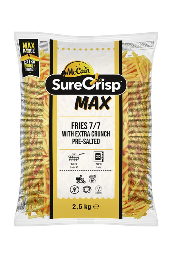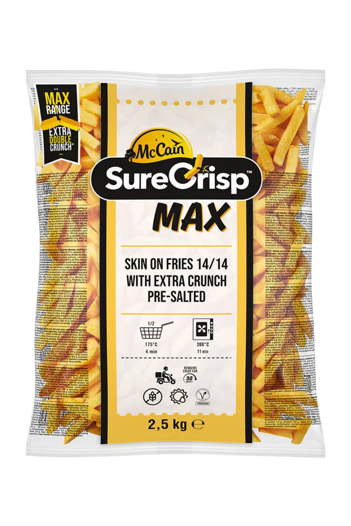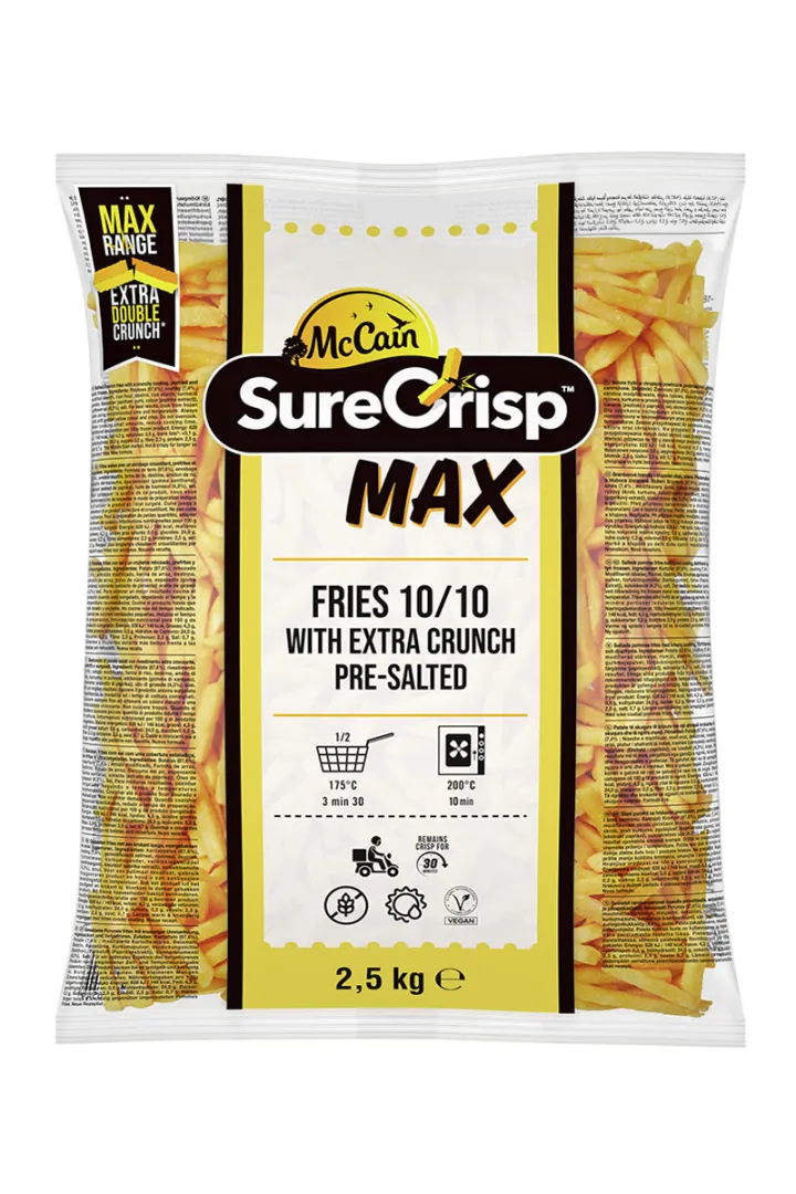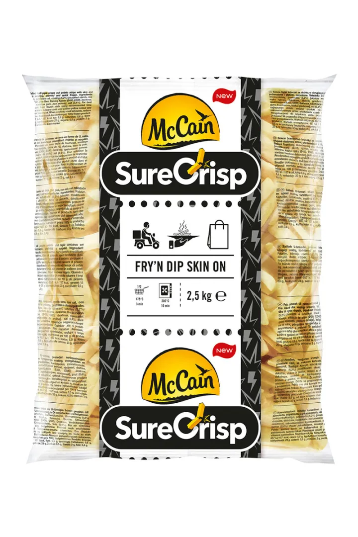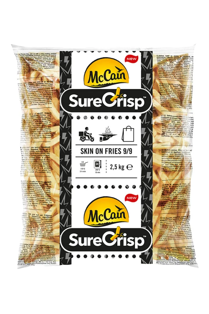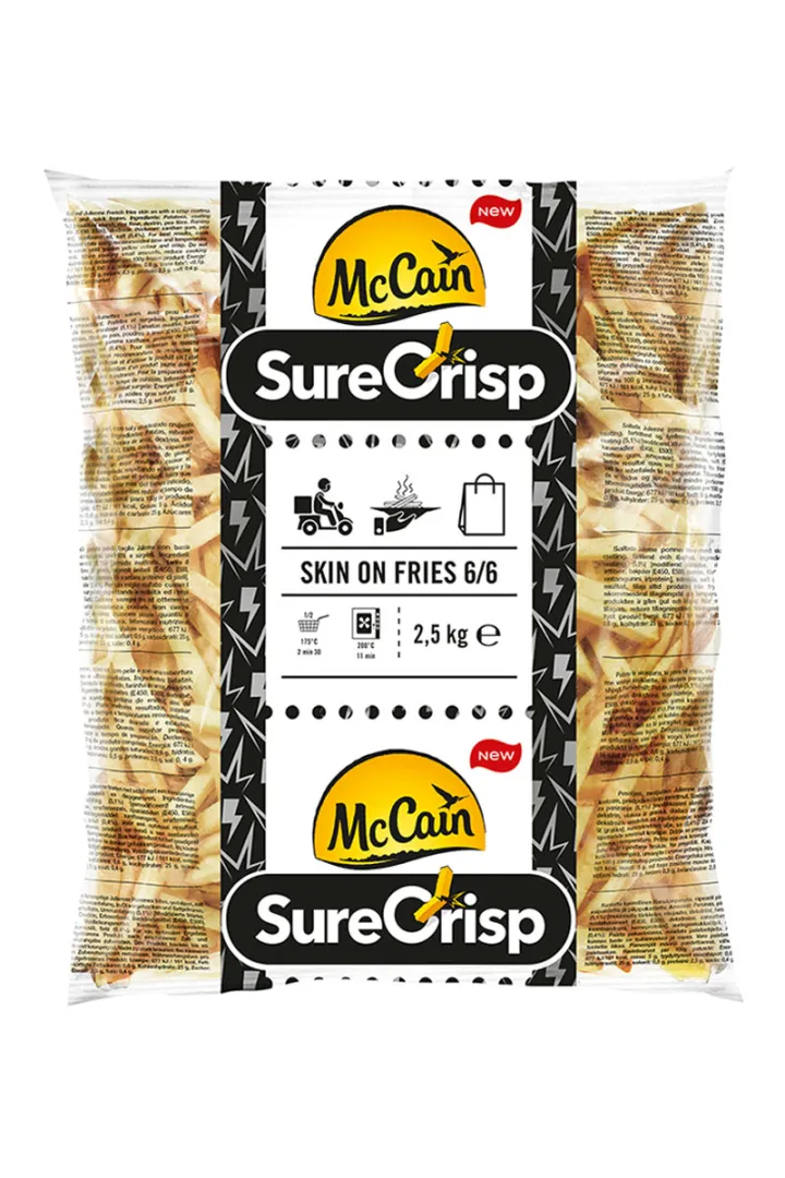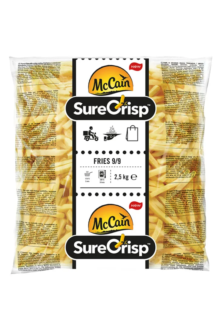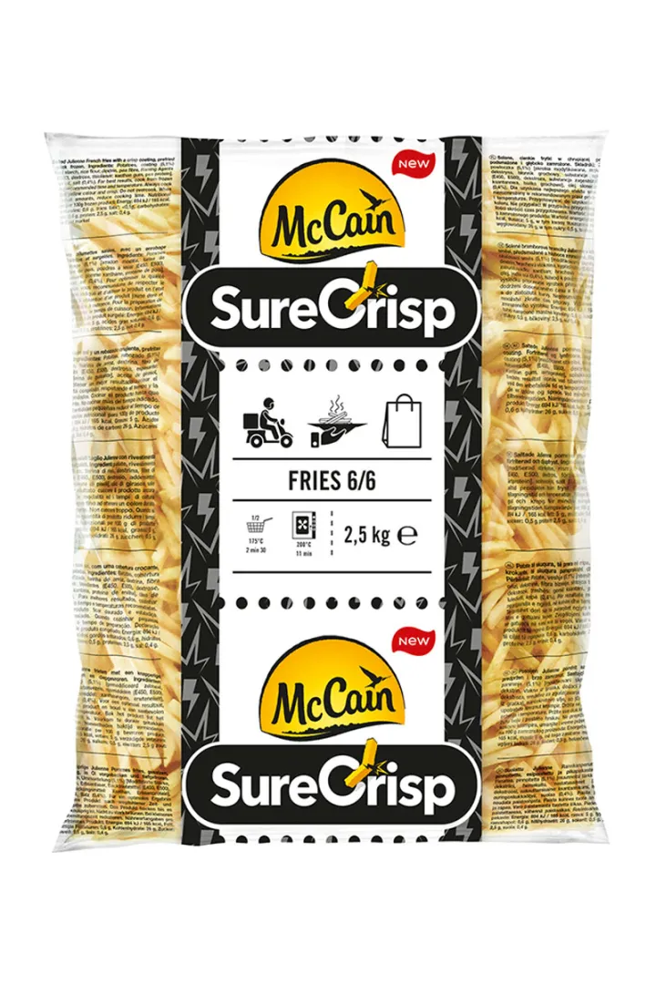 Hranolky McCain SureCrisp sú určené priamo pre reštaurácie, ktoré v oblasti donášky a osobného odberu nepoznajú žiadne kompromisy. Každá porcia je zárukou dokonalej chrumkavej textúry a jedinečnej chuti. Jednoducho dokonalé riešenie pre horúce a chrumkavé hranolčeky kdekoľvek a kedykoľvek.