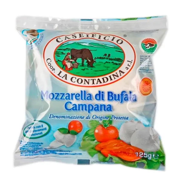 Smotanovo biela Mozzarella di Bufala Campana DOP sa smie vyrábať iba tradičným spôsobom na vybranom území južného Talianska. Lahodná mozzarella z byvolieho mlieka je chuťovo výraznejšia než bežne dostupná kravská, ktorú neobmedzene chrlia mliekarne po celom svete.