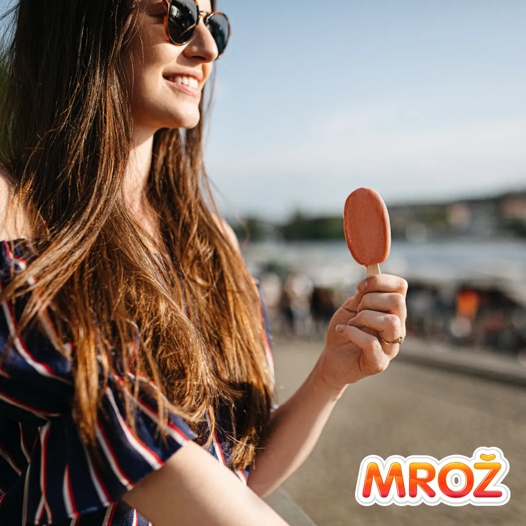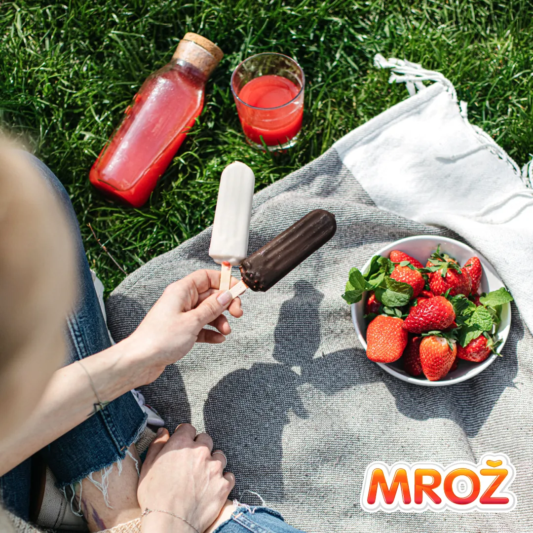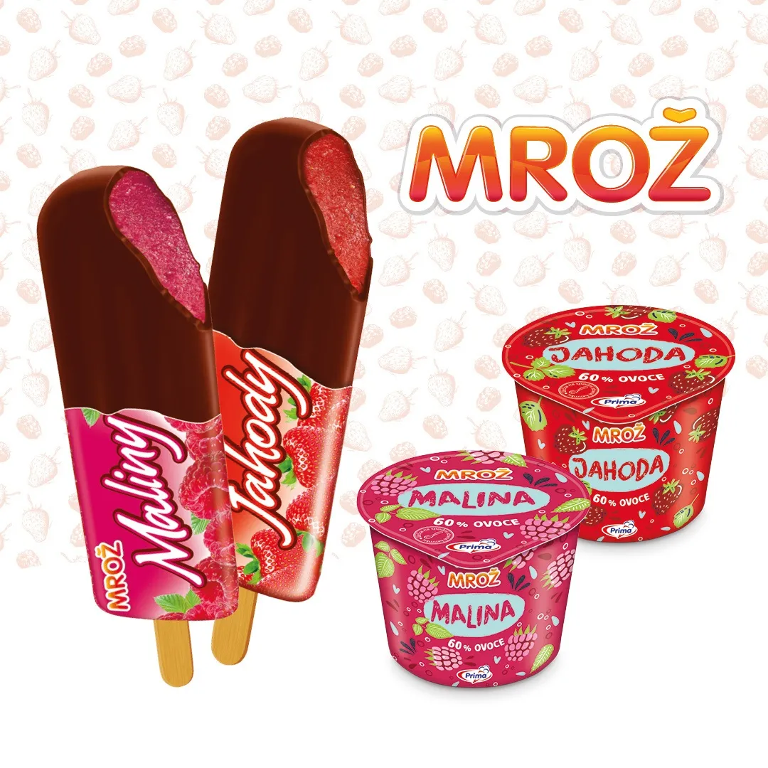Ovocné zmrzliny Mrož Jahody a Mrož Maliny obsahujú len 4 ingrediencie: 60 % nepasírovaného ovocia, cukor, vodu a štipku kyseliny citrónovej (žiadne stabilizátory). Obe zmrzliny sú na drievku a zaliate kakaovou polevou.