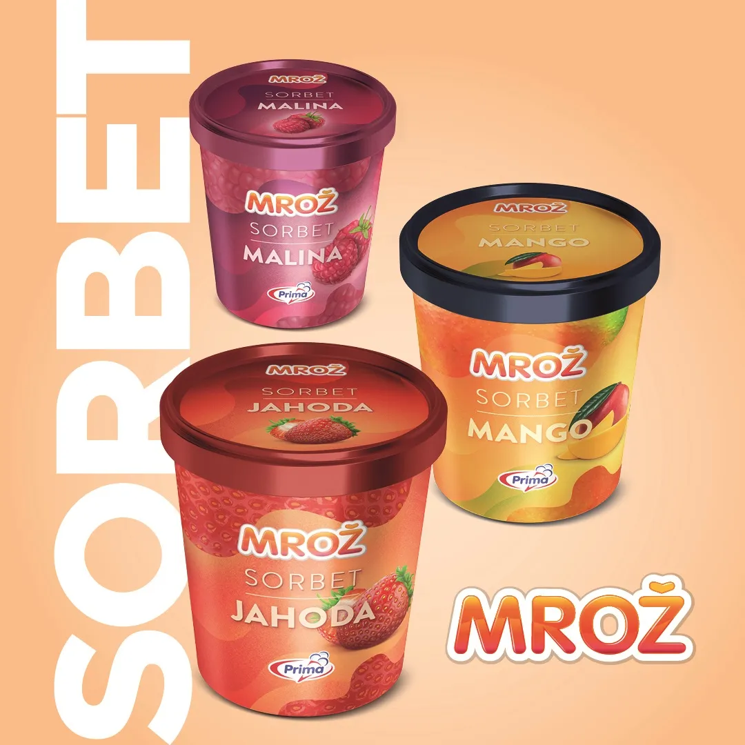 Sorbety na rozdiel od zmrzlín neobsahujú tuk ani laktózu. Sú ideálnou pochúťkou po hlavnom jedle. V pintových kelímkoch sa úspešne udomácnila trojica minuloročných noviniek – Mrož sorbety mango, jahoda a malina.