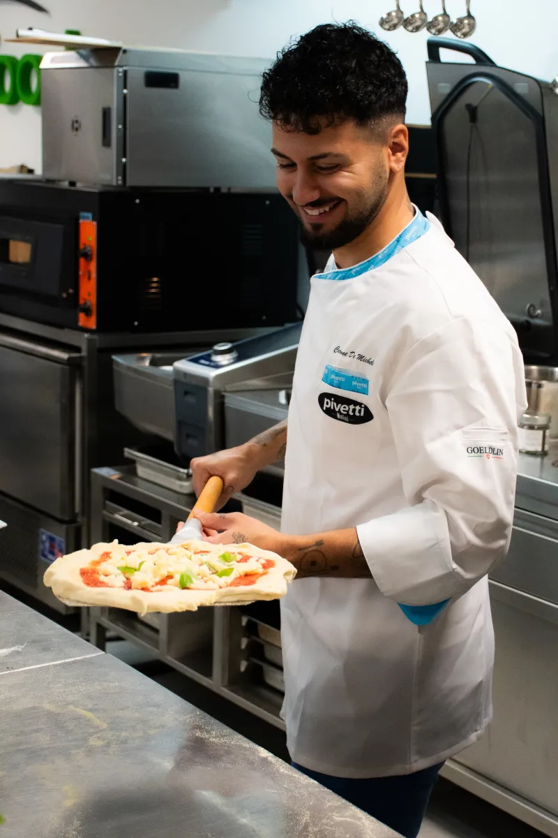 Carmine De Michele, ktorý je dvojnásobným Vice majstrom sveta (2021 a 2022) a držiteľom titulu Best Pizzamaker ItalianoDOC of the World 2023, sa s nami podelil o svoje bohaté skúsenosti. Účastníci workshopu mali možnosť osvojiť si špeciálne techniky prípravy tradičnej neapolskej pizze, od výberu správnych surovín, váženie, miesenie cesta až po pečenie v peci. Samozrejme, nezostalo len pri teórii. Každý si mohol vyskúšať prípravu a zdobenie pizze na vlastnej koži.