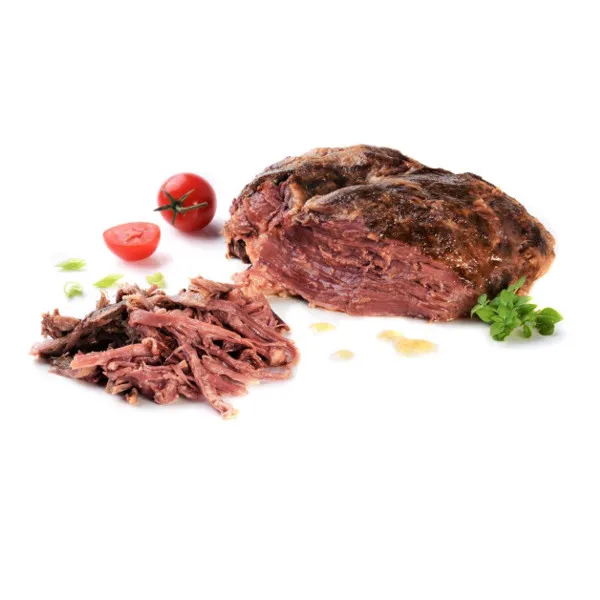 Mäso Banquet sous-vide je jemne ochutené a vhodné na okamžité podávanie – studené aj teplé. Jednoducho sa krája, nerozpadá sa a výborne sa hodí na misy alebo predjedlá. V teplej kuchyni ho využijete do omáčok, na gril či ako rýchlu minútku. Výpek z balenia poslúži ako základ omáčky. Výhody: konzistentná chuť, štruktúra a úspora času.